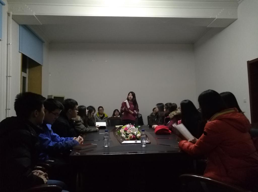 三楼会议室开展了以“学习十九大报告”为目的的党日活动。2014级党组织委员由婷婷出席并主持了本次会议,2014级全体党员积极参与了此次党日活动。