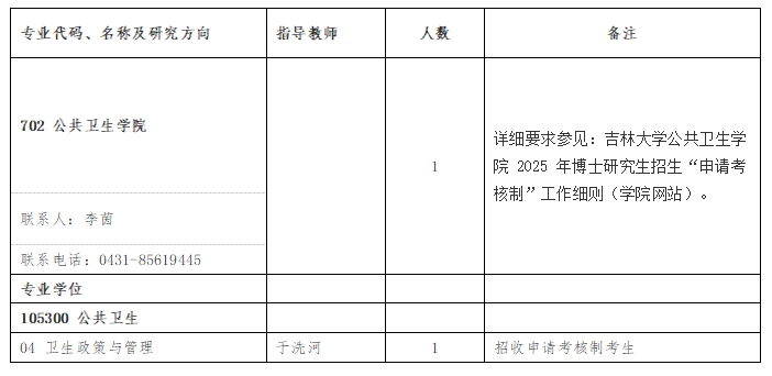 的本次招生信息(附表),5月6日至5月10日进行网上报名,5月10日16点前将报名的申请材料按要求发送电子版至1712503542@qq.com(邮件名称“全日制博士报名材料”)。如有疑问可电话咨询,电话号码为:0431-85619445。