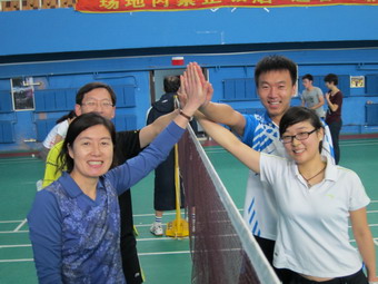 教师在钟绍峰书记的带领下组成教师联队,40余位本科生、研究生在团委负责人苏国范老师的带领下组成学生联队,对抗赛在天翼羽毛球俱乐部举行。