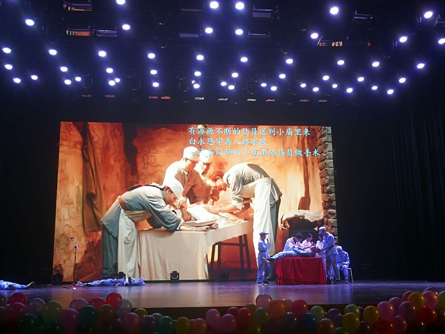 随后进行的是大家期待已久的“青春芳华、追梦华夏”迎新晚会。晚会一开始,气氛就被火爆的开场舞点燃。在场的同学们打开手机闪光灯,大声欢呼,挥舞着手中的荧光棒,晚会立即进入了高潮。接下来的节目更是异彩纷呈:有伴随优美舞步的悦耳歌曲《风吹麦浪》;有行云流水、刚劲有力的武术《精忠报国》;有激昂澎湃、满怀豪情的诗歌朗诵《我的中国梦》;有蕴含异域风情的少数民族舞蹈串烧《藏维之美》;有致敬诺尔曼·白求恩医生的舞台短剧《白求恩》;有感人肺腑、震撼心灵的歌舞表演《父亲写的散文诗》;更有可爱的孩子们带来精彩的小提琴演奏……令人兴奋的抽奖环节将气氛再次推向高潮,主持人幽默的语言和夸张的动作不由让观众们捧腹大笑。晚会中,现场氛围始终热烈。在一片和谐的氛围里,晚会接近了尾声。领导、嘉宾们同工作人员、表演者们在舞台上合影留念,共同见证了这场年度盛宴。至此,黑料不打烊
