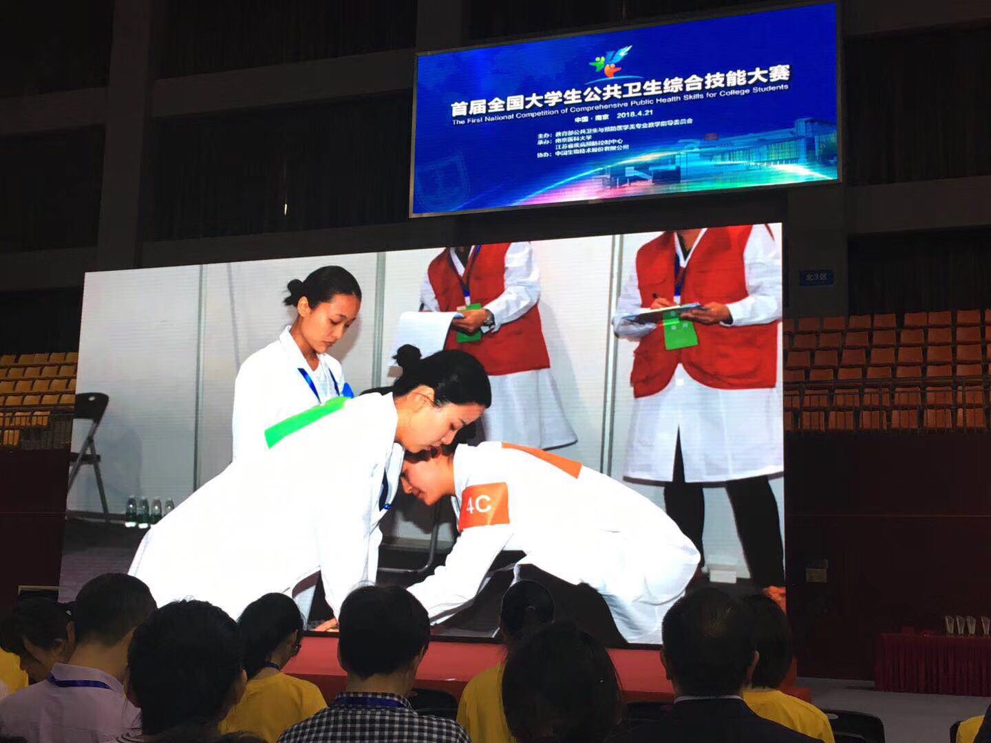 大赛包括初赛和决赛两个环节。上午初赛采取“站点式考核”方式,主要考察学生对“临床基本技能”、“个体防护”、“样本采集和现场检测”、“卫生处理”等临床基本技能和公共卫生基本操作技能的掌握。下午,包括东道主南京医科大学在内的11支队伍进入决赛,参加公共卫生基本理论测试和案例分析考核。