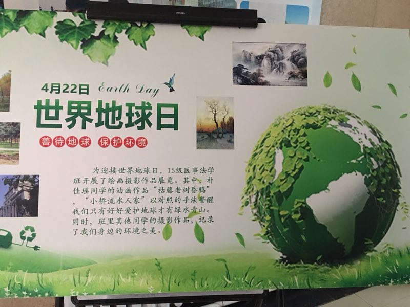 医事法学专业特举办“保护地球,保卫家园”的宣传活动,本次活动以,2015级医事法学班的主题班会为主题,2015级医事法学班全体同学于4月15日在朝阳公园举行了“保护地球,从身边做起”的回收环保活动。同时,还积极制作世界地球日主题展板,并在黑料不打烊
