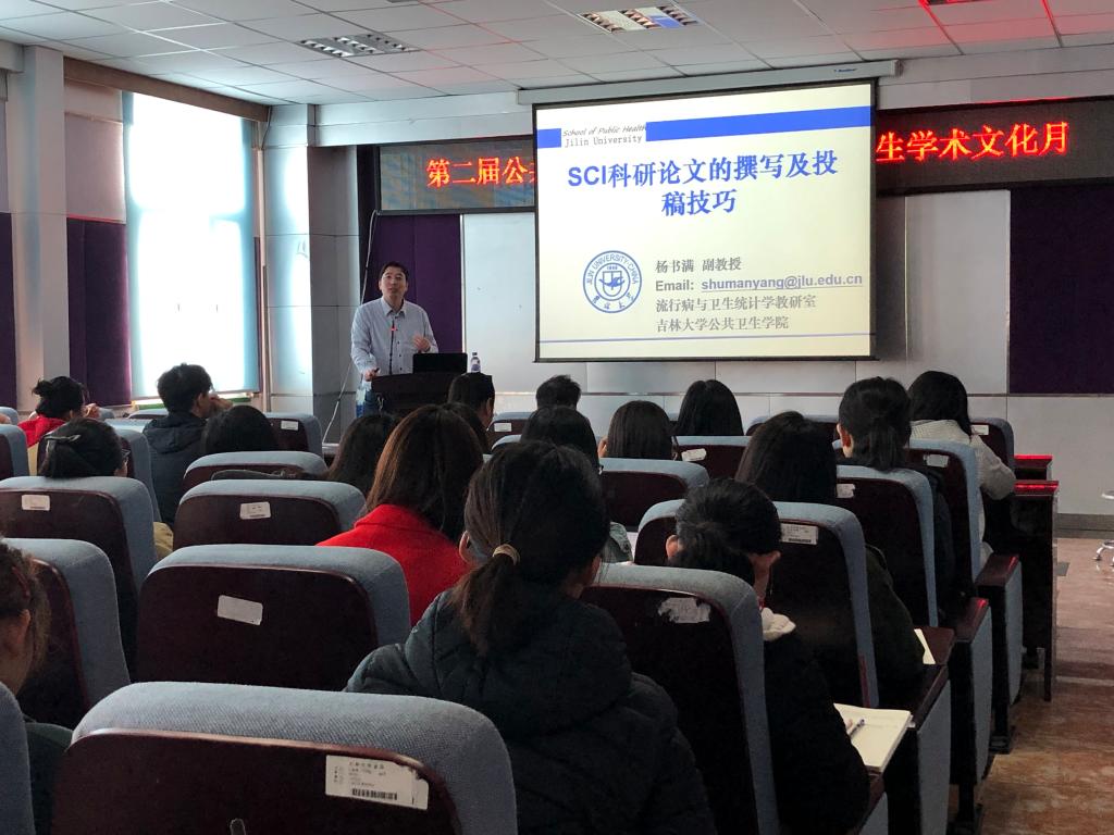 流行病与卫生统计学教研室杨书满副教授为在校师生做《SCI科研论文的撰写及投稿技巧》的知识讲座。
