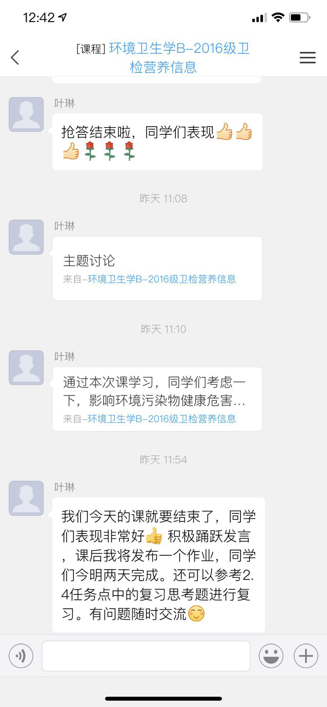 《环境卫生学》课程在线完成主题讨论、任课教师及时布置课后作业
