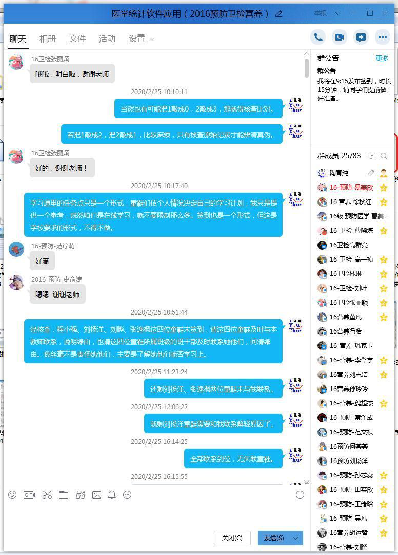 《医学统计软件应用》课程师生通过QQ群在线交流