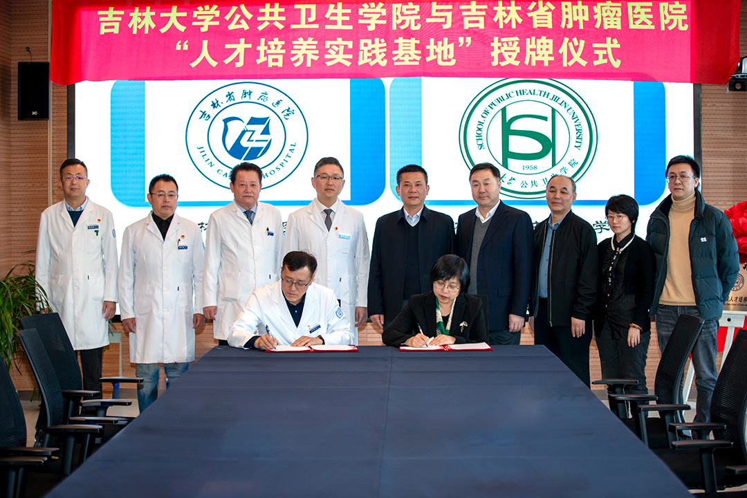 党委书记赵国利、院长刘雅文、副院长寇长贵、副院长王志成;吉林省肿瘤医院党委书记刘海峰、院长王茂楠、副院长刘刚、副院长陈忠民出席,双方相关科室负责人、在院实习公共卫生硕士研究生参加仪式。仪式由吉林省肿瘤医院院长王茂楠主持。