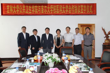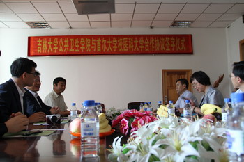 医科大学合作协议签字仪式。会议由主管科研工作的副院长于洗河主持。