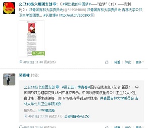团委组织部从2013年4月5号开始开展了以“说出我的中国梦”为主题的微博讨论活动。活动主要以院微博和各班团支部微博为主而展开。