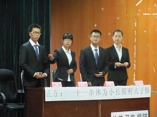 辩论队由12级和13级各两名共四名同学组成。