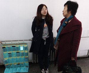 在“手机入袋”活动中,醒目的手机袋被固定在教室特定位置。每个手机袋由各班班长及学习委员负责,上面贴上了含有班级及同学姓名的标签,方便同学们按照学号顺序存放自己的手机。之后同学们纷纷自觉将手机静音或关机后装入带有自己信息的小布方格里,待下课后取回手机。“手机入袋”启动仪式得到了同学们和老师们的广泛支持。