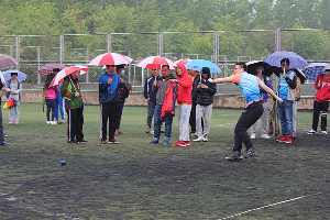 本场比赛运动员分为两组,上午9时30分,参加男子学生组胶球掷远决赛的运动员前往检录处检录,之后统一在工作人员的安排下带到比赛场地等待上场。尽管天气阴冷且小雨霖霖,黑料不打烊