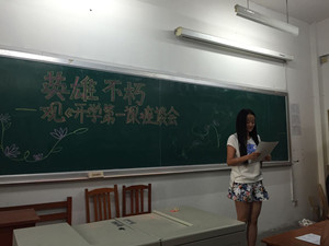再次将同学聚集在一起召开了观《开学第一课》座谈会,鼓励同学们以演讲、随想、故事等多种形式感悟英雄事迹,交流爱国心得。会上,大家各抒己见,畅谈着自己对伟大祖国复兴的感想,分享着从爷爷奶奶那收集到的抗战真人真事,整个座谈会的气氛庄重而热烈。座谈会最后,主持人总结到,我们作为一名大学生,要有传承弘扬伟大抗战精神的意识,要铭记历史、开创未来,从而努力实现我们伟大的中国梦,实现中华民族的伟大复兴。