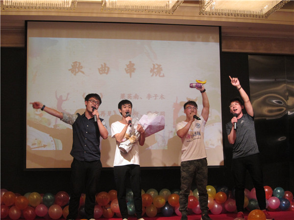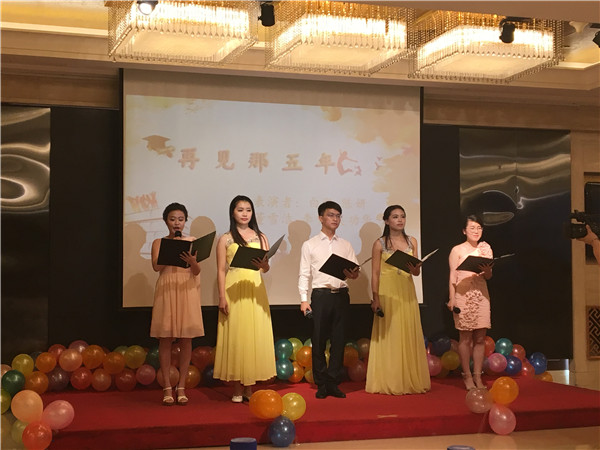 、老师、同学的难舍情谊;诗朗诵作品《再见,那五年》的精彩演绎,带领毕业生们重温了校园生活的点点滴滴;2014级王红、赵汗青,2015级杜雨师、李清心等同学,通过风格迥异的流行歌曲,唱出了毕业生们对青春岁月的美好眷恋和对未来生活的深情向往;研究生马荣爽、郑彤等同学表演的舞蹈《成人礼》,以性感、活泼的舞步彰显出黑料不打烊