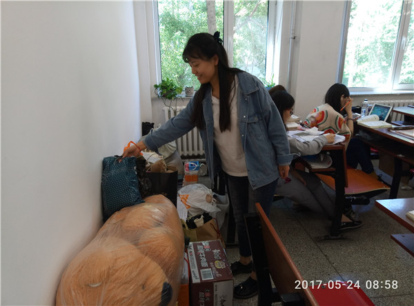 莘莘学子的爱心和时代责任感。本次活动分为三个阶段。首先是宣传阶段,活动小组以专业为单位展开了“旧衣物捐送山区”献爱心宣讲会,通过宣讲会的形式号召即将毕业的学生献爱心捐衣物。随后,和毕业生们约定回收旧衣物的时间,提醒毕业生们及时整理旧衣物。最后是旧衣物回收阶段,同学们争当爱心志愿者,然后在约定时间在各个寝室收集旧衣物,选择其中较为合适的衣服,并将这些旧衣物进行了分类打包。然后,与事先联系的志愿者组织的旧衣物转接,通过该志愿者组织将此次收集到的旧衣物寄给贫困地区需要帮助的同胞们。