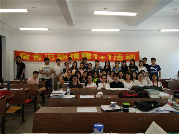 以此契机攻坚克难,在毕业生寝室开展了“宿舍旧物捐赠1+1”活动。