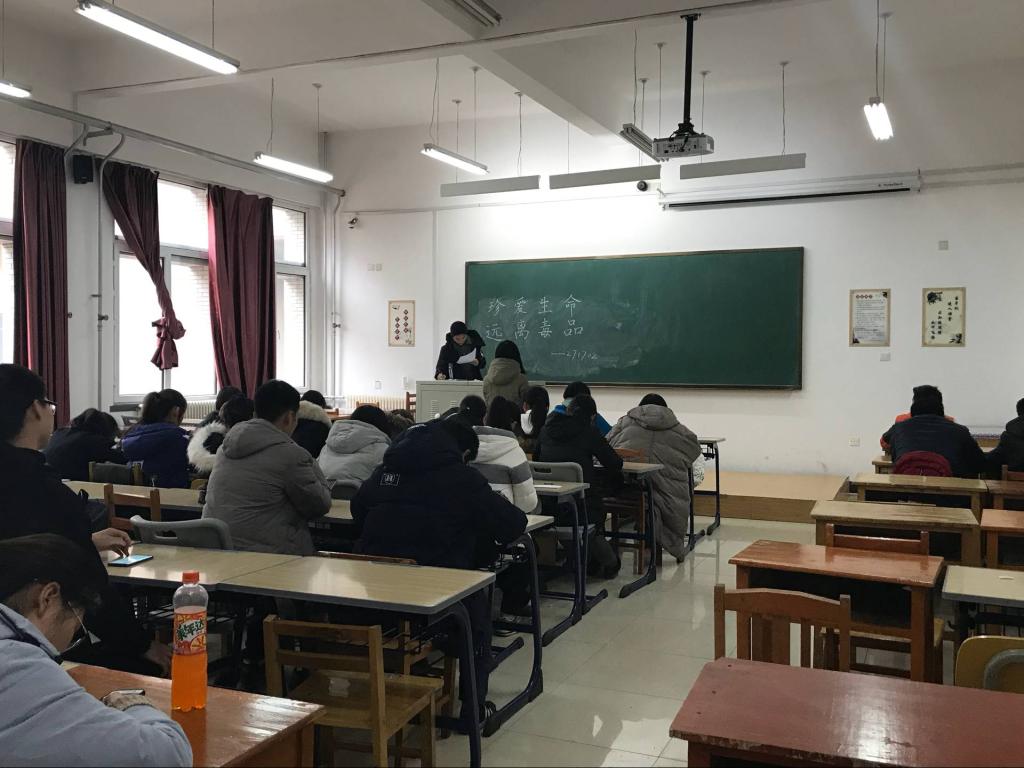 2017级预防医学二班于中心校区李四光教学楼114教室开展了以“珍爱生命,远离毒品”为题的禁毒主题班会,2017级预防医学二班全体同学出席。