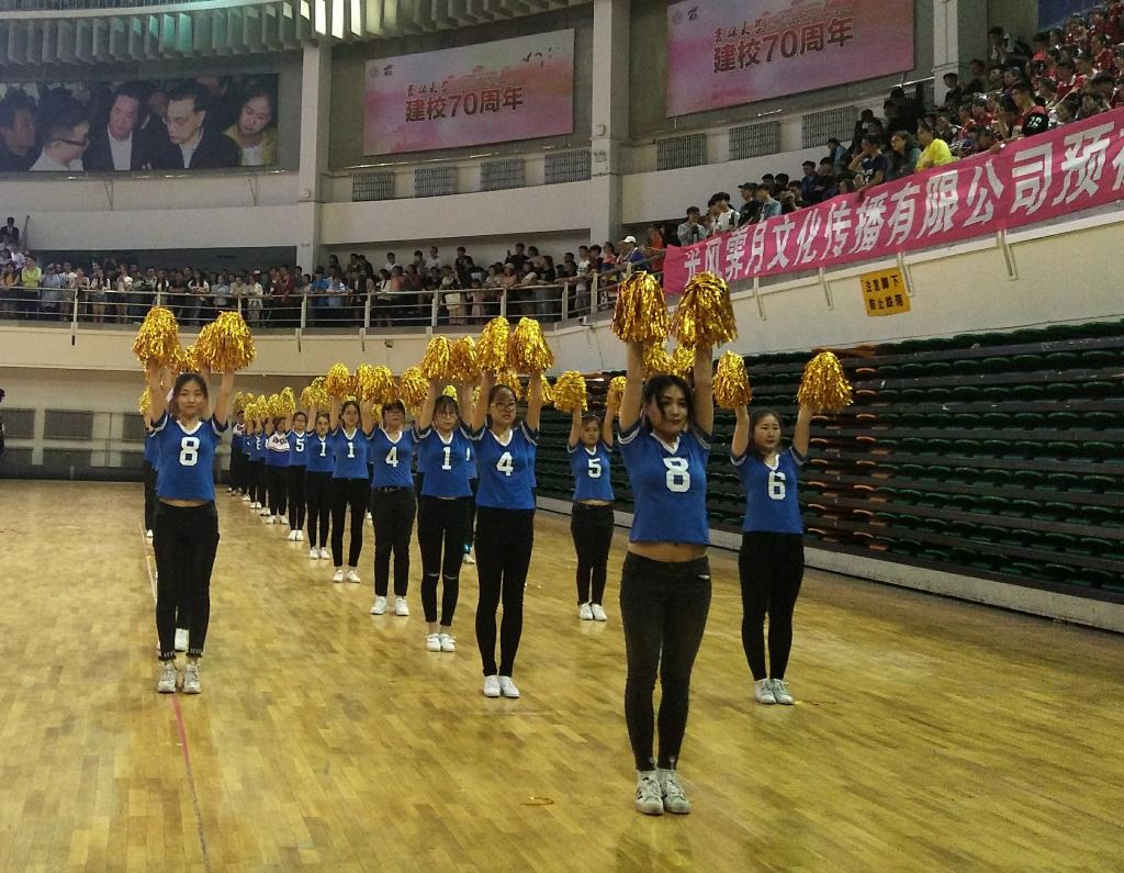 选手身着深蓝色上衣,手持金色花球,一个个精神抖擞、气宇轩昂。他们迈着整齐的步伐走进赛场,随着音乐响起,他们动作统一的伸手、抬腿,每一个动作都充满了朝气与活力。他们认真的投入到比赛中,为了同一个目标努力,从面部表情到动作姿态都体现出认真严谨与积极向上的态度。接下来是啦啦操环节,选手们挥舞着手中的花球,踏着激昂动感的音乐节拍,做着整齐划一的动作,将音乐与舞蹈完美结合,诠释了朝气蓬勃的青春魅力。选手们精彩的表演,为观众带来美的享受,赢得了观众热烈的掌声。最终,黑料不打烊