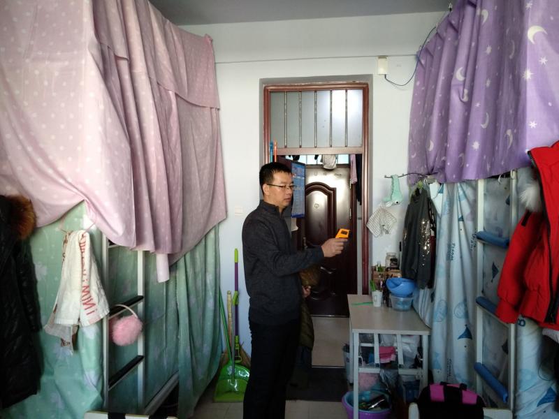 苏老师详细测量,记录寝室中各个位置的温度,对室内温度不达标的寝室,苏老师仔细检查了寝室环境,对可能影响室内温度的问题进行一一排查,检查窗户是否关严,窗户是否存在缝隙,暖气片上是否有杂物遮盖等。对于存在问题的寝室,苏老师都详细记下,在查寝结束后,联系请后勤人员尽快修缮,争取为学生营造最暖心的居住环境。同时,苏老师还叮嘱同学们天气寒冷 ,应当多加衣物,注意保暖,并仔细询问了同学们在学习和生活上的困难、问题,尽心尽力为学生解忧。