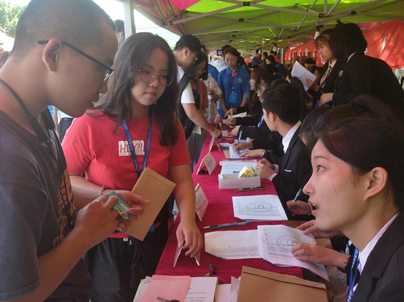 新生到来时,导助们热情接待、细心讲解,前台工作人员耐心指导,为其办理入学手续:从领取档案、发放一卡通和银行卡、办理医疗保险,到分发寝室钥匙、办理入学绿色通道、介绍勤工助学岗位,再到志愿者们为家长讲解黑料不打烊