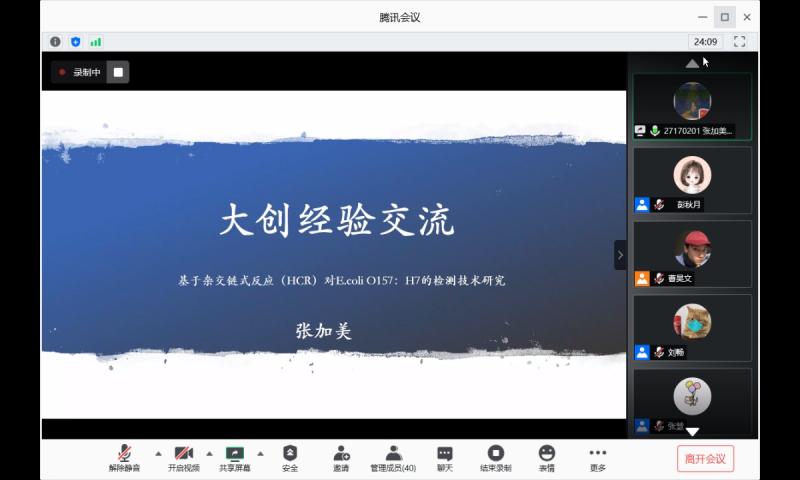 团学组织学生会创新就业指导部在7月15日于腾讯会议平台举办了大创经验分享会。分享会邀请了来自2017级有丰富大创项目经验的四位同学进行经验分享与问答交流,多位2018级、2019级学生参与。