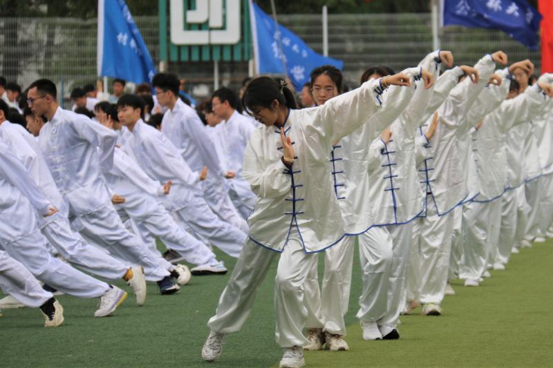 为一组同时上场表演,公共卫生学院太极代表队于第五组上场表演。表演过程中同学们的每一次抬手,每一次出拳,每一次转身,都体现出他们平日训练里的严谨,认真和辛苦。每一个眼神,每一个表情,每一个动作无不展现着公卫学子的青春活力。赛后同学们还表达了对将要举行的运动会的期待以及对运动员们的勉励。