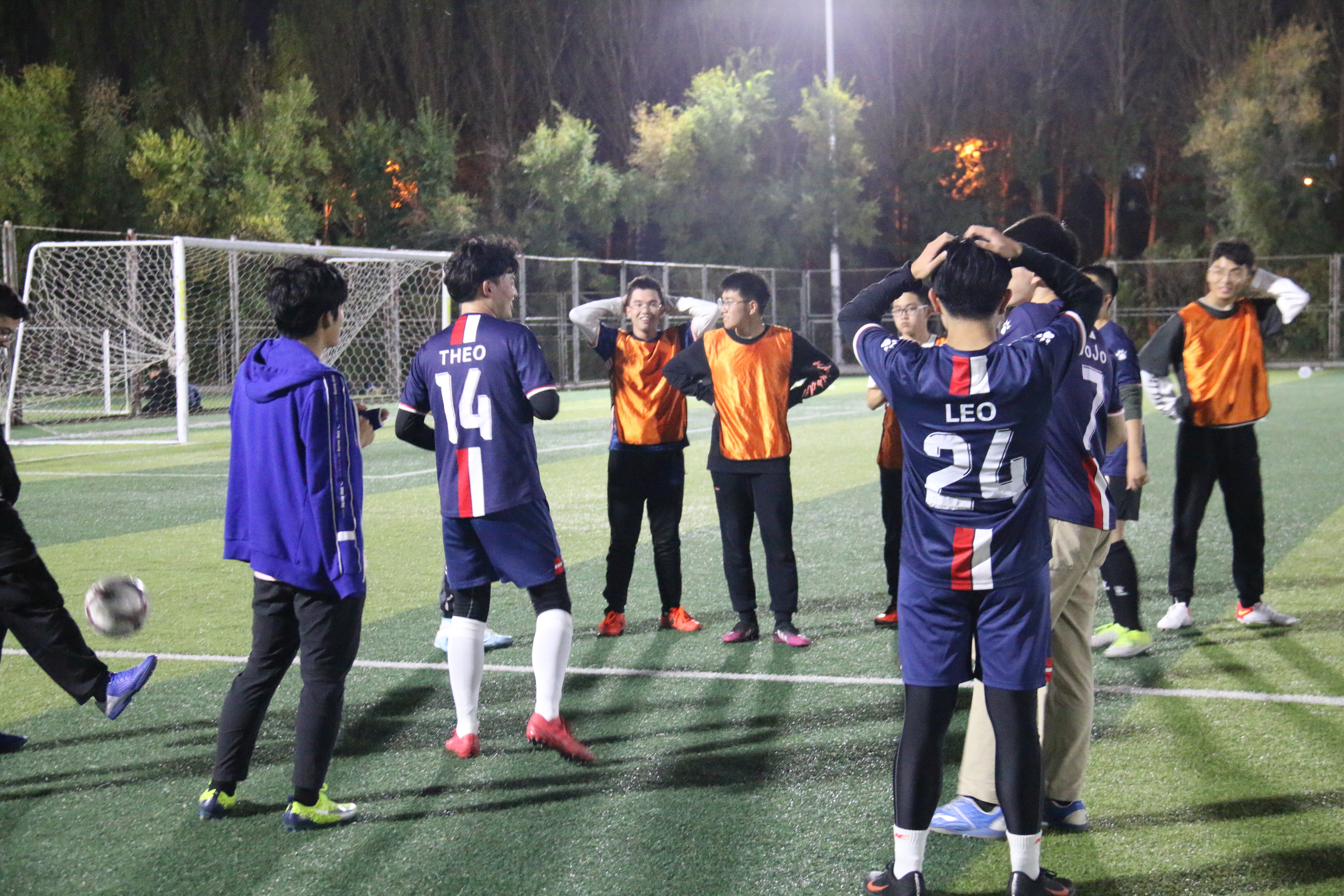由于2021级报名人数较少,裁判决定将2020,2021级同学归为一队,2018,2019级同学为一队,并交给了新生队橙色队服。比赛正式开始,2021级同学刚开场就带着一股狠劲,不论是抢球还是进攻,都展现出了新生应有的积极向上的精神风貌,在流畅的团队配合和个人的进攻技巧的结合下,新生队先下一城。当然,学长们也身怀绝技,凭借着老道而成熟的经验和成员之间的默契,他们很快地追赶上了比分。就这样,你来我往,上半场的比赛结束,新生队2:1领先。经过短暂的休息,下半场比赛拉开序幕。新生队依旧敢拼敢抢,但又有些急于进攻,被老队员们抓住了机会,成功破门。双方积极上抢,不惧对抗,但又不失和谐友好,牢记“友谊第一,比赛第二”的体育精神。中途,一位新生不小心腿部抽筋,也被队员们及时拉伸,抬到了场边休息。最后,这场激烈的交战以3:3的比分圆满收尾。