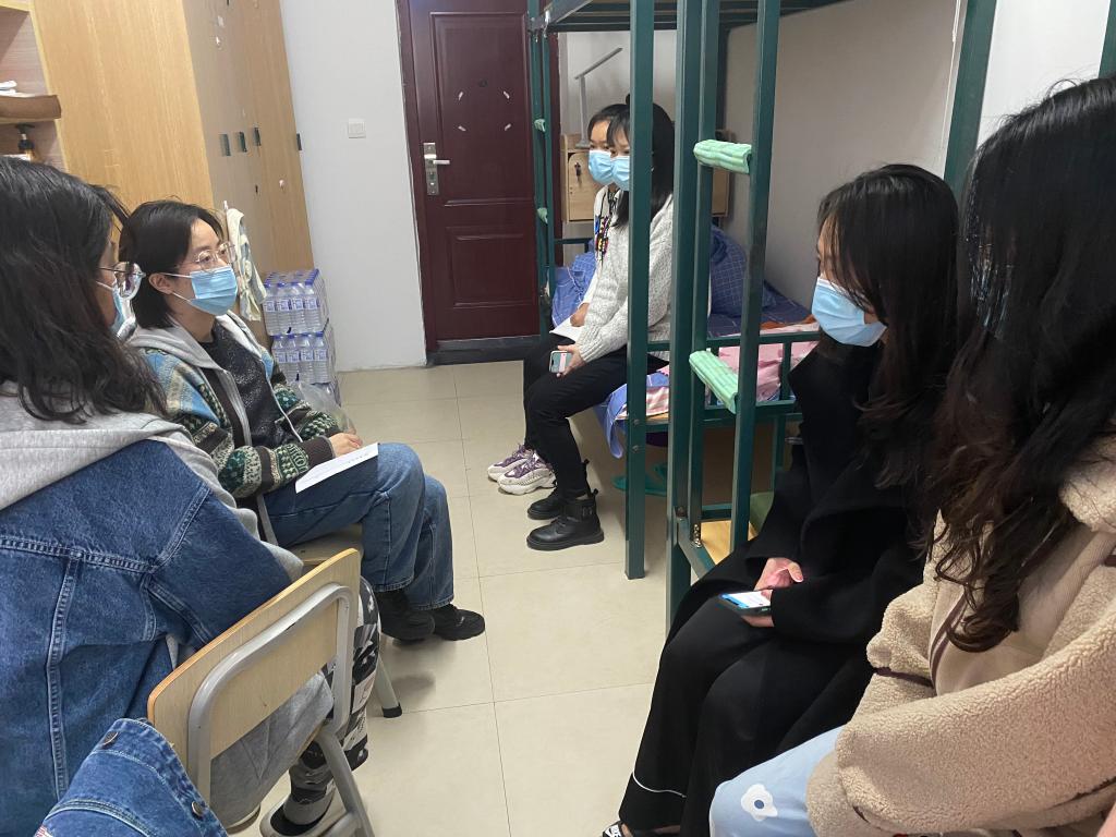 相关要求和消息,做好疫情通报和防疫工作安排,希望同学们不要恐慌,平稳学生情绪。二是成立志愿者服务专班,负责餐、水等物资发放及分配等工作,叮嘱志愿者提高消毒意识和科学佩戴口罩等工作细节,做好楼层间纵向转运和楼层内横向分配,确保精准配送到人。三是发挥党员先锋模范作用,成立公寓党员抗疫先锋队,要求党员同志提高政治觉悟、发扬奉献精神,在疫情关键时刻站出来,做好公寓楼同学发烧、隔离等突发事件的协调处置及后期核酸检测等工作的预案,切实履行党员职责和义务。四是开展辅导员走寝,摸清公寓楼在楼人数和隔离、治疗等同学底数,做好配餐的实时统计,重点就少数民族同学和就医同学人群进行分类统计,畅通学生与辅导员的沟通渠道,做到工作精心,学生暖心。五是根据公寓封闭的实际情况,进行安全防火大检查,对防火通道相关堆积物品、寝室电线较乱等情况进行整改,做好相关同学的解释工作,确保公寓安全稳定。
