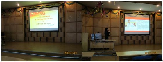 首先,主持人介绍了深入开展党的群众路线的时代背景——习近平总书记指出,开展党的群众路线教育实践活动,是实现党的十八大确定的奋斗目标的必然要求。随后又向大家介绍了此次党的群众路线教育实践活动的总目标:为民、务实、清廉;主要任务:聚焦“四风”、整治“四风”;基本原则:照镜子、正衣冠、洗洗澡、治治病。之后主持人又带领大家观看宣教视频“四风之害”,与会同学受到了生动的党性党风党纪教育和道德品行教育,深刻认识到开展党的群众路线教育是保持党的先进性和纯洁性、巩固党的执政基础和执政地位的必然要求,是解决群众反映强烈的突出问题的必然要求。