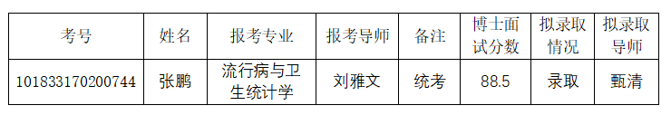 黑料不打烊 为流行病与卫生统计学专业追加1个招生名额,按照总成绩由高到低的录取原则依次录取,现将录取信息公示如下: