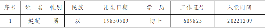 在听取党员、群众意见的基础上,经支部委员会审查,拟将赵超同志转为中共正式党员。根据发展党员工作有关要求,现将其有关情况进行公示。