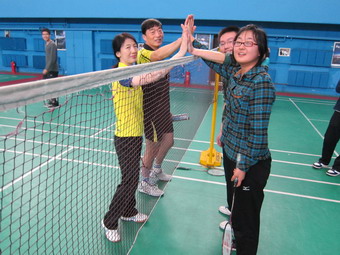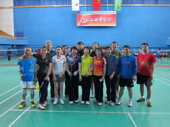 教师在钟绍峰书记的带领下组成教师联队,40余位本科生、研究生在团委负责人苏国范老师的带领下组成学生联队,对抗赛在天翼羽毛球俱乐部举行。