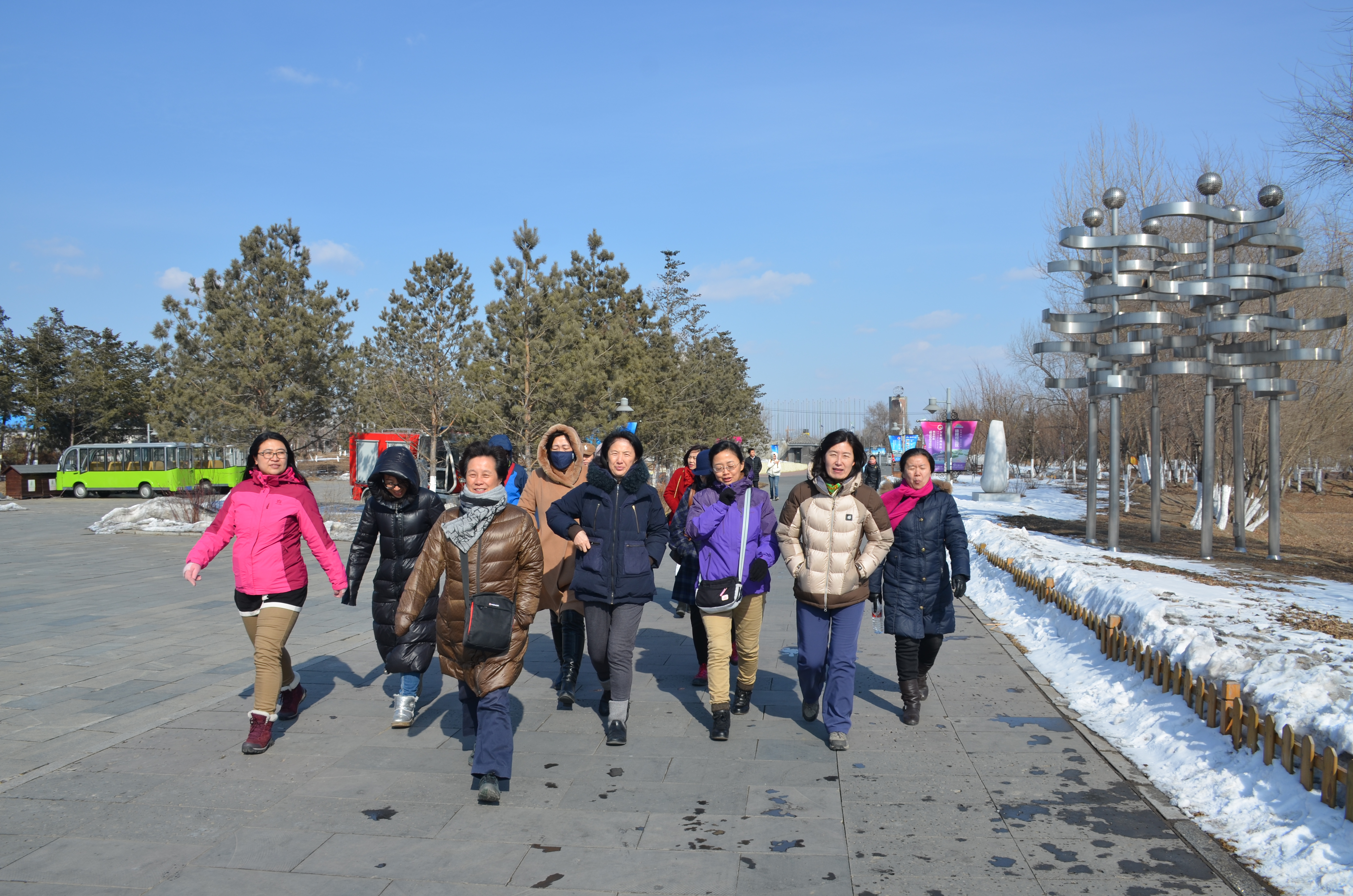 北国初春,寒风料峭,却丝毫没有影响老师们徒步健身的决心和意志。大家一个个意气风发、精神抖擞,边走、边看、边游,无论是脚步匆匆,还是赏景拍照,一路上,兴致勃勃,欢声笑语。在全程约4公里的徒步路上,大家相互之间交流感情、释放压力,或抬头仰望碧蓝的天空,或闭眼呼吸新鲜的空气,畅游其中,步步有景,处处融情,时而步伐矫健,时而步履轻盈。其乐融融的氛围中,女同胞们忘却了烦恼、陶冶了情操。