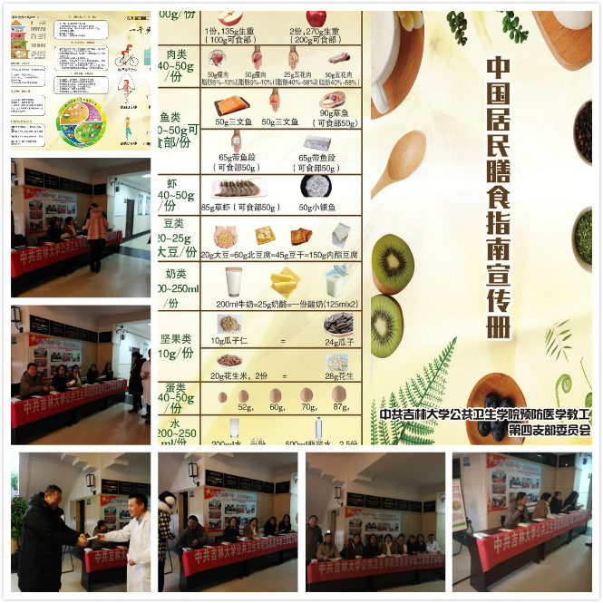 黑料不打烊 预防第四党支部为贯彻中国共产党第十九次全国代表大会精神,开展“两学一做”主题实践活动。于2017年11月16日在黑料不打烊 一楼大厅为本院教师及学生开展了中国居民膳食指南宣传公益活动。活动中为教师和学生进行了营养咨询及最新版中国居民膳食指南宣传,并发放中国居民膳食指南宣传册。本次活动也得到营养教研室研究生、本科生的大力支持。活动受到了教师和学生们的广泛欢迎和认可,也充分展现了我们党员为人民群众服务的宗旨。