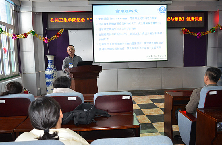 讲座正式开始,温教授向大家介绍:宫颈癌是常见的女性生殖系统癌症,发病率较高,再加上女性对其了解较少,重视不够,所以早期检查的主动性不高,导致死亡率也较高。因此,了解宫颈癌的相关知识并早期筛查,能极大降低发病率。可以从病因起做好宫颈癌的预防措施,保持健康的生活和饮食习惯。