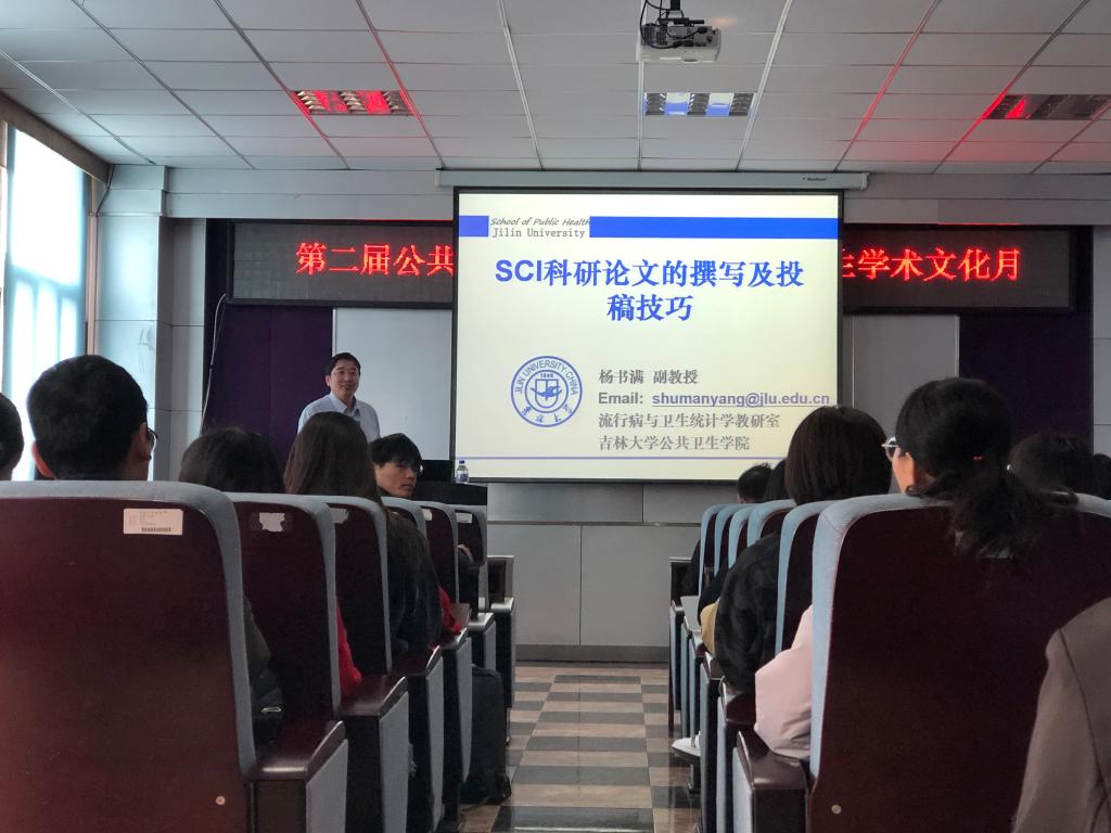 流行病与卫生统计学教研室杨书满副教授为在校师生做《SCI科研论文的撰写及投稿技巧》的知识讲座。
