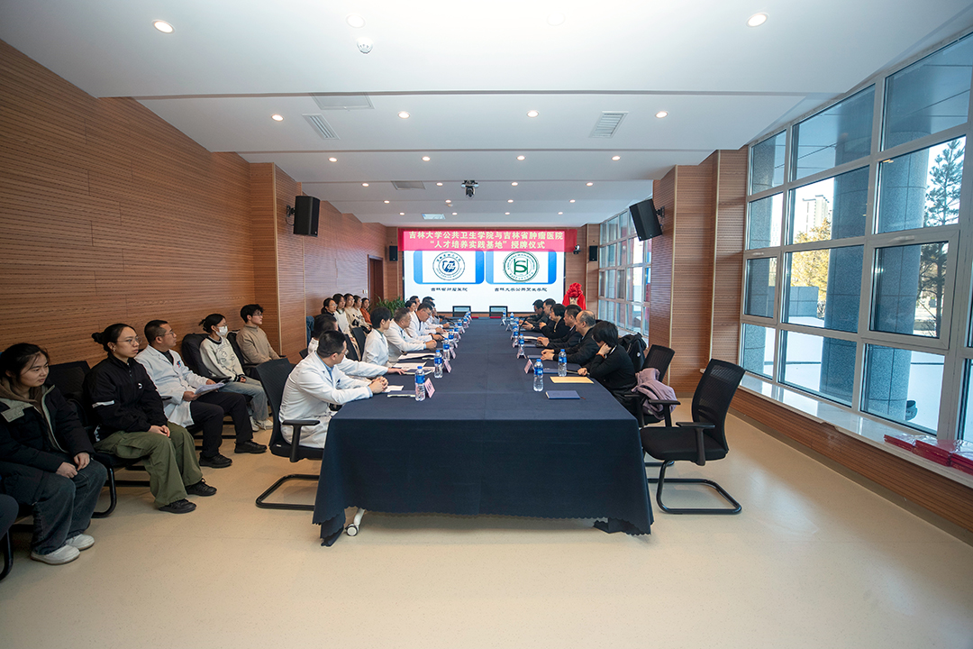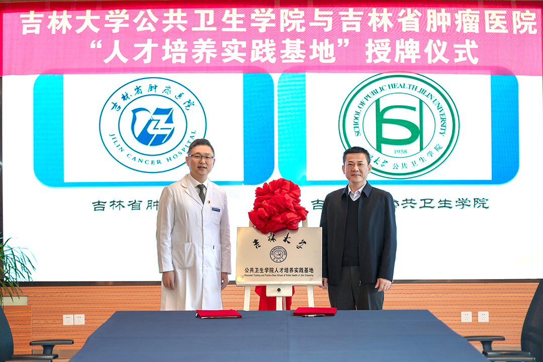 党委书记赵国利、院长刘雅文、副院长寇长贵、副院长王志成;吉林省肿瘤医院党委书记刘海峰、院长王茂楠、副院长刘刚、副院长陈忠民出席,双方相关科室负责人、在院实习公共卫生硕士研究生参加仪式。仪式由吉林省肿瘤医院院长王茂楠主持。