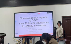 新引进唐敖庆青年学者潘浪副教授以“Guanine oxidation repaired by OGGl: From Molecular Mechanisms to Disease Intervention”为题进行分享,报告了其近年来对于8-oxoGua和OGG1在肺部炎症性疾病中表观调控作用的研究成果。随后参会的青年教师对潘浪老师的研究内容进行了热烈的交流,现场学术氛围热烈。本次活动促进了青年教师间的学术交流与合作,为跨学科研究搭建了良好平台。