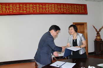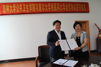 医科大学合作协议签字仪式。会议由主管科研工作的副院长于洗河主持。