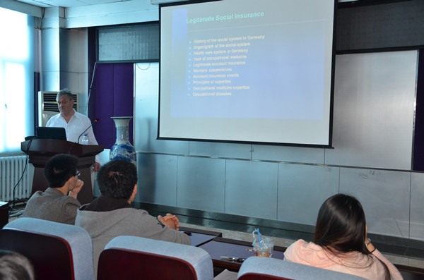 Rainer教授在讲座中首先介绍了德国社会保障和职业伤害保险和保护工人合法权益体制的演变历史,然后详细讲解了德国社会的各种保障机制,失业保障、职业病保险、医疗保险、养老保险等多种社会保障机制,最后详尽地阐述了职业伤害和职业病领域的各种保障机制,让在座的教师和研究生对德国社会的各种保障机制和职业病及职业伤害领域的保障机制及相关的法律法规有了较为全面的了解。