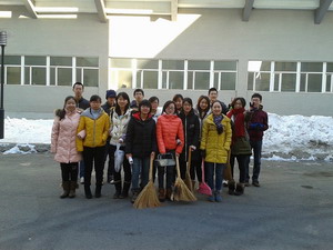 首先,同学们在班长和团支书的带领下赶赴环卫工人的休息处,热情而礼貌地为环卫工人们分发早起买好的鸡蛋,包子和豆浆;同学们的到来让他们十分高兴,在吃着热乎乎早餐的同时还不忘对同学们表示感谢。随后,大家纷纷拿起清扫工具跟随他们清扫街道。此时的天气十分寒冷,可是大家热情丝毫不减,不嫌工作又脏又累,认真清理地面的落叶、包装袋和果皮等;大家的劳动减轻了环卫工人的很多负担。告别他们后大家来到新民校区一公寓楼前和第三教学楼的教室,开始了这里的清扫工作。直到楼前和教室变得干净如初,大家才意犹未尽地离开。