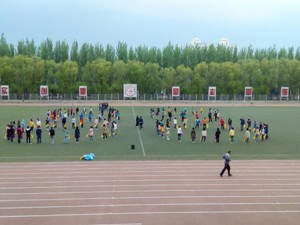 院学生会文艺部号召全体2013级同学于前卫校区体育场排练运动会大型舞蹈,同学们五点二十就已于体育场集合完毕,文艺部大二工作人员也不辞辛劳早早从新民校区赶来。