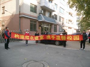 学生会生活部于新民校区第一教学楼门口举办了以“构建绿色寝室,携手温馨校园”为主题的百人联名签字仪式。