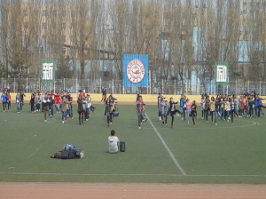 下午一点,同学们早早地来到了体育场,自觉站好队伍。学生会文艺部的成员们分工明确,迅速组织同学们投入到训练中。本次排练的主要目的是寻找排练时出现的问题,弥补缺陷;教授新动作,变换新队形,使舞蹈达到最佳效果。一遍又一遍的训练,虽然繁琐枯燥,但是同学们没有丝毫抱怨,每个同学都以高度的热情进行训练。通过这么多天的排练,同学之间已建立起了默契,动作规范,队形整齐;文艺部的成员也精益求精,对个别同学的动作耐心纠正。