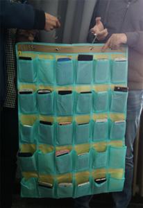 在“手机入袋”活动中,醒目的手机袋被固定在教室特定位置。每个手机袋由各班班长及学习委员负责,上面贴上了含有班级及同学姓名的标签,方便同学们按照学号顺序存放自己的手机。之后同学们纷纷自觉将手机静音或关机后装入带有自己信息的小布方格里,待下课后取回手机。“手机入袋”启动仪式得到了同学们和老师们的广泛支持。