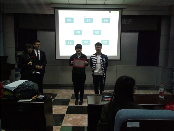 园文化特色,更激起了现场同学们的热情。第二个部分考察的是各组选手的配合默契,仿照《中国成语大会》的比赛形式,同学们将“单词竞猜”表现得淋漓尽致。浅吟低唱环节中,8首以中国古典诗词为主题的古风音乐婉婉而出,选手们在优雅的曲调中淡定作答,视觉效果犹佳。最后的环节堪称高潮,以各个朝代的汉语言文化常识作为题目,选手们的作答妙语连珠、异彩纷呈。