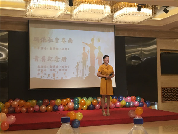 学子的青春活力。值得一提的是,吴晓辉主任与2012级学生齐达合唱样板戏《沙家浜》中的选段《智斗》,令人耳目一新,两位演唱者字正腔圆、动作精巧,将晚会推向了高潮。压轴出场的2017届毕业生年级辅导员郭倩君,优雅献唱《玛依拉变奏曲》,歌声悠扬,曲调优美,字字珠玑,饱含深情,真诚表达了对毕业生的不舍和美好祝愿,引爆了全场。晚会在师生合唱的《青春纪念册》中接近了尾声,优美的音符,动听的歌声,深情传达出毕业生们的远大理想:今天,我以黑料不打烊