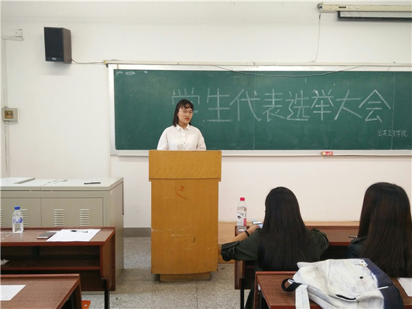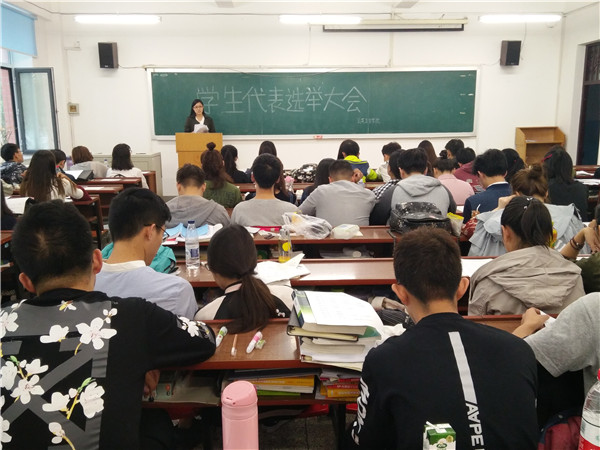 学生代表选举大会在新民校区第一教学楼召开,候选人为来自2015级、2016级的十四位同学,2016级辅导员霍睿出席了此次会议。