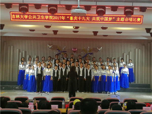 校歌》,第二首为各班自由选定曲目。首先,2017级预防医学一班二班合唱了歌曲《喀秋莎》,这首俄文歌曲描述的是二战时期少女为革命贡献出自己爱情的故事,表达了二战中人们对共产主义充满期待。紧接着,2017级放射医学一班二班演唱了歌曲《在灿烂阳光下》。随后,2017级预防医学三班和医药信息管理演唱的《啊朋友再见》别具特色,歌颂了为革命信仰献出宝贵生命的战士们。然后,主持人与现场观众进行了暖场互动小游戏,问了几个关于中共的小问题,调动了现场观众的热情。2016级预防一班二班为大家带来了经典红歌《我爱你中国》,表达了对祖国深沉的爱意。2016级放射医学一班二班合唱了歌曲《没有共产党就没有新中国》,歌颂了我们党的伟大。最后,2016级预防三班与医药信息管理演唱了气势磅礴的《保卫黄河》,展现了对母亲河黄河的赞美。最后,2017级放射医学一班二班荣获一等奖,2016级放射医学一班二班荣获二等奖,2017级预防医学一班二班荣获了三等奖。