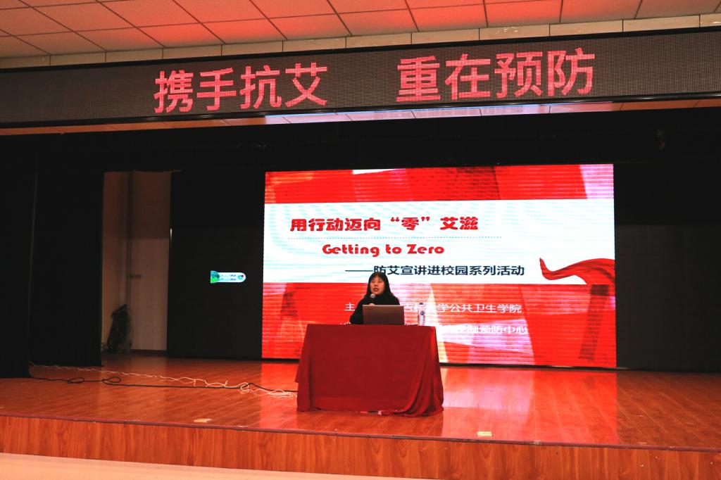 学生红十字会合作,于中心校区田家炳小礼堂举办了“遏制艾滋,履行承诺”防艾宣讲会,宣讲会邀请了长春市疾控中心性病艾滋病控制科杨劲松作为主宣讲人。