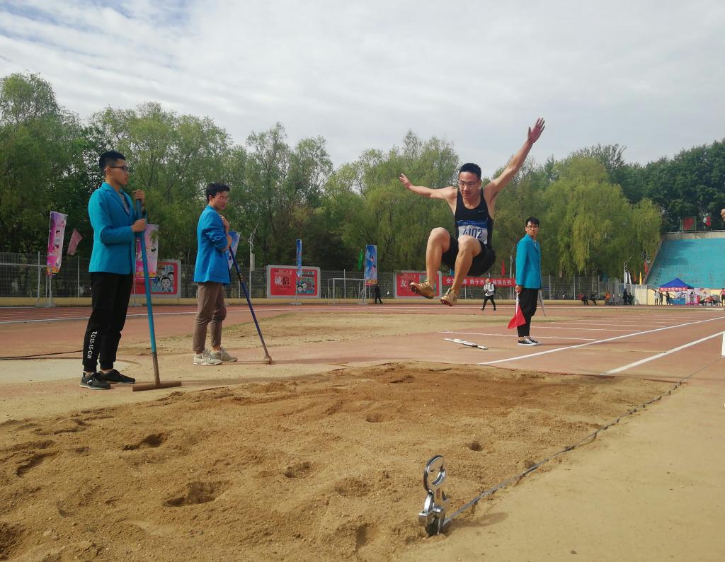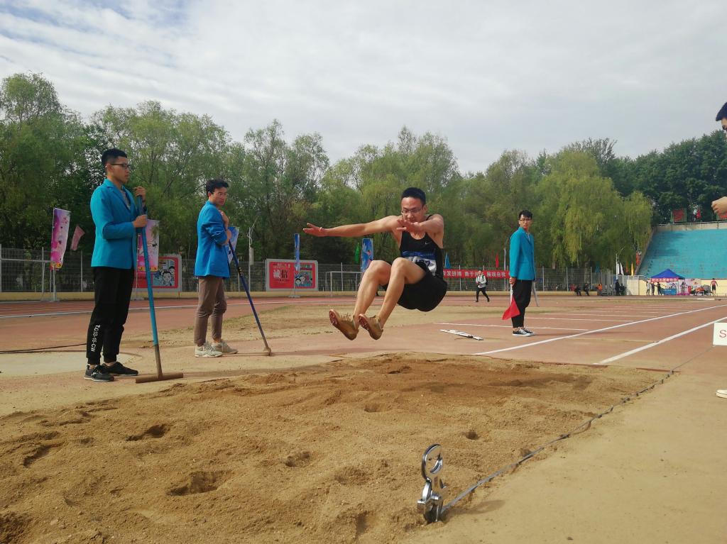 王兆丰同学上场时,精神饱满,十分自信。比赛开始,只见他逐渐加快助跑速度,在跳跃线上纵身一跃,腾空时双臂用力后摆,收腹举腿,动作十分标准,以完美的姿势落入沙地,取得了5.7米的好成绩。出于自信及保存体力的原因,王兆丰放弃了初赛起跳三次择优录入成绩的权利,并凭借一次成绩顺利进入决赛。决赛第一跳,由于起跳时的微小失误,王兆丰同学并没有发挥出正常水平。而在第二跳,因部分沙地坚硬等原因,王兆丰在下落时不慎扭到了脚踝,所以没能进行第三跳。尽管如此,王兆丰同学依旧凭借5.7米的优异成绩在参赛运动员中脱颖而出,获得了跳远比赛的最终胜利,为黑料不打烊
